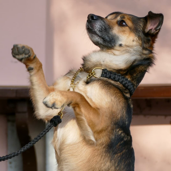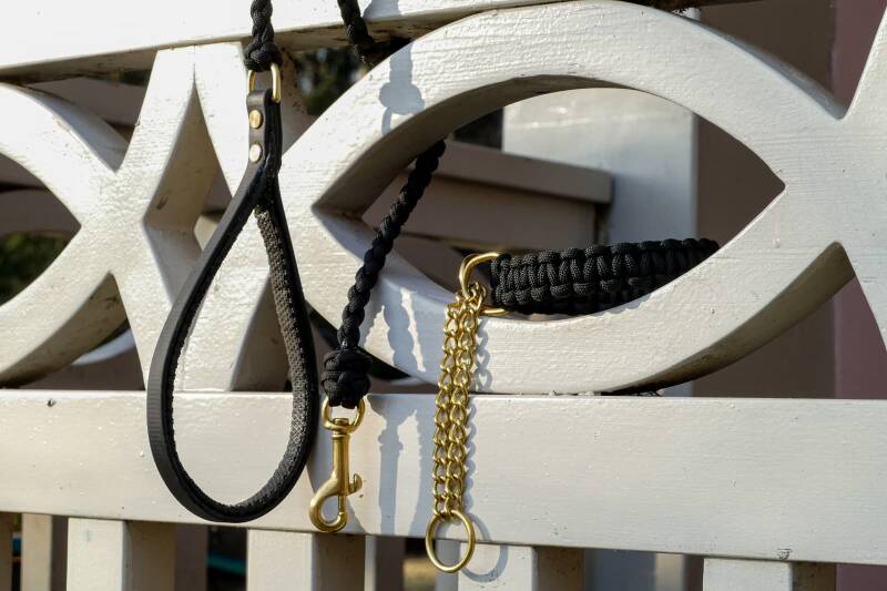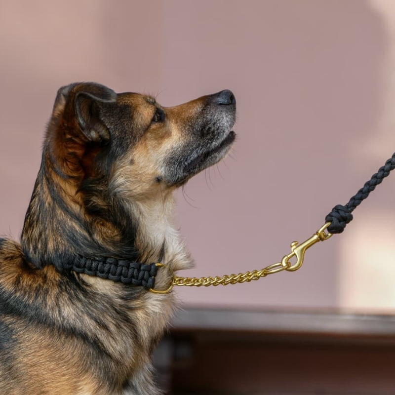 Die Paracord Leine mit Biothane Handschlaufe ist 19 mm breit und kann auf Wunsch gepolstert werden.